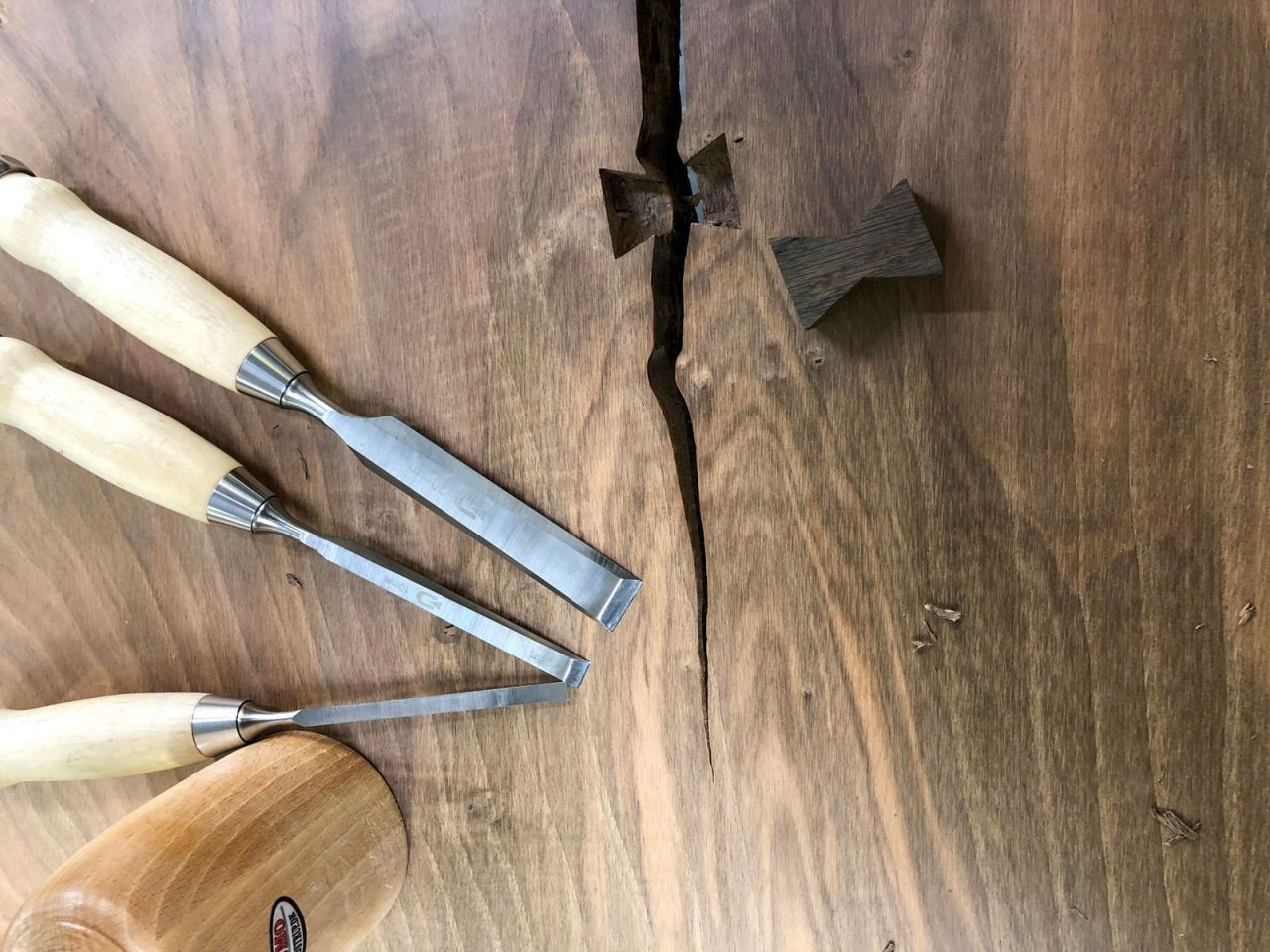 Sommerfuglesamlinger bruger man til at forhindre træet i at slå store sprækker i tørringsprocessen. Her har det dog kun en visuel effekt, træet var tørt!