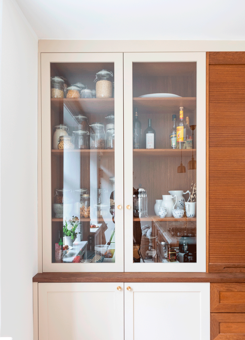 Selv om pladsen er stærkt begrænset i byggeforeningshusene i Kartoffelrækkerne, København, er det lykkedes boligejeren, arkitekten og Jönsson Plus i fællesskab at etablere et rummeligt køkken med et ensartet udtryk og en høj grad af funktionalitet for de daglige brugere. En af opgaverne var et skræddersyet jalousiskab.